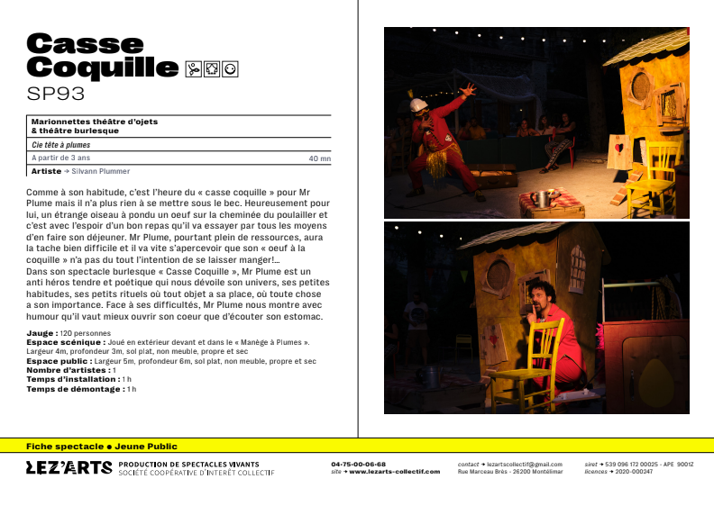 Dans son spectacle burlesque CASSE COQUILLE, Monsieur Plume est un anti héros tendre et poétique qui nous dévoile son univers, ses petites habitudes, ses petits rituels où tout objet a sa place, où toute chose a son importance.