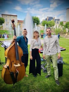Le trio Entre deux Eaux présente un répertoire voguant entre la temporalité des époques et le dépaysement géographique. Entrelaçant leurs influences, Tony, Vincent et Sabine interprètent un mélange doux et joyeux de swing, de chansons françaises et de musiques brésiliennes.