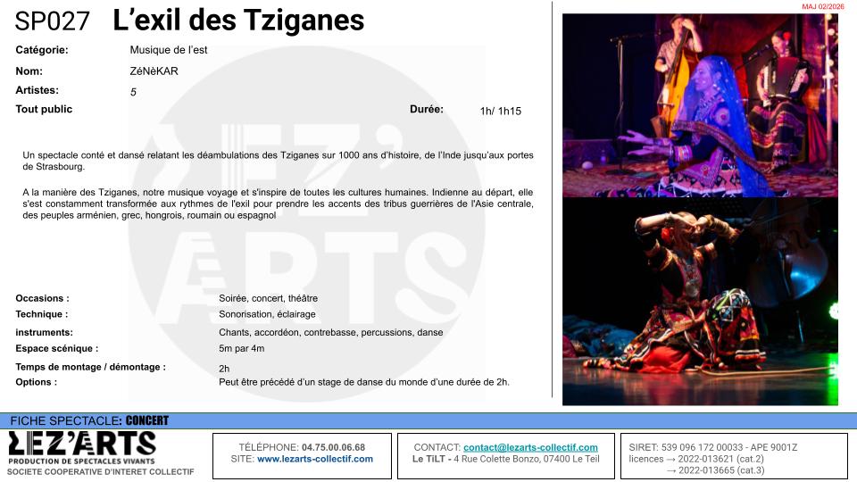 Une célébration de l’histoire et de la culture des Tziganes à travers les siècles, une fresque dansée et contée retraçant le parcours de ce peuple, depuis leur départ de l’Inde il y a 1000 ans jusqu’aux portes de l’Europe.