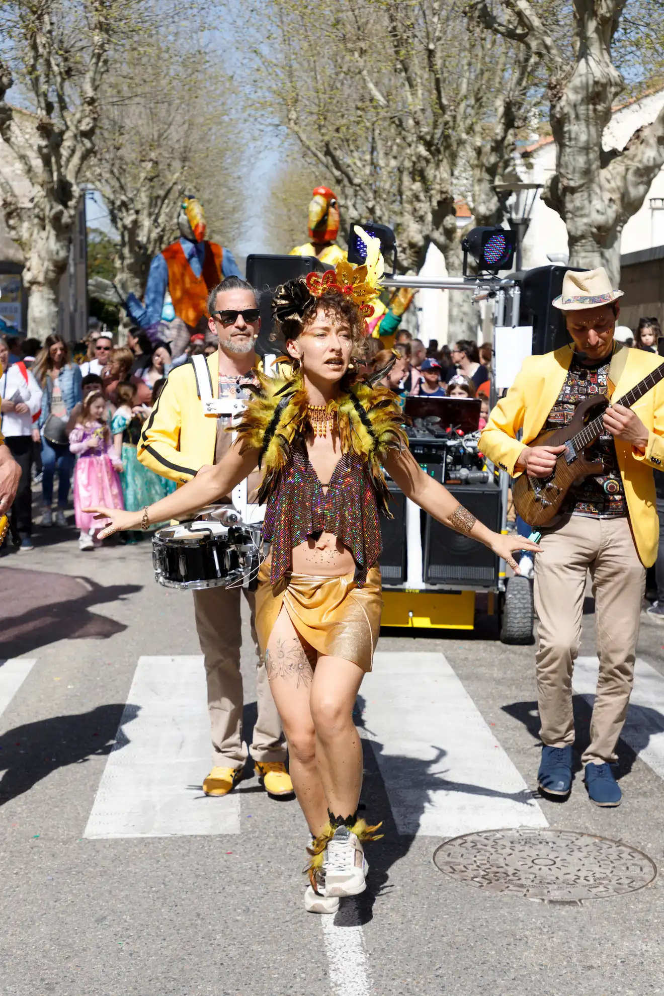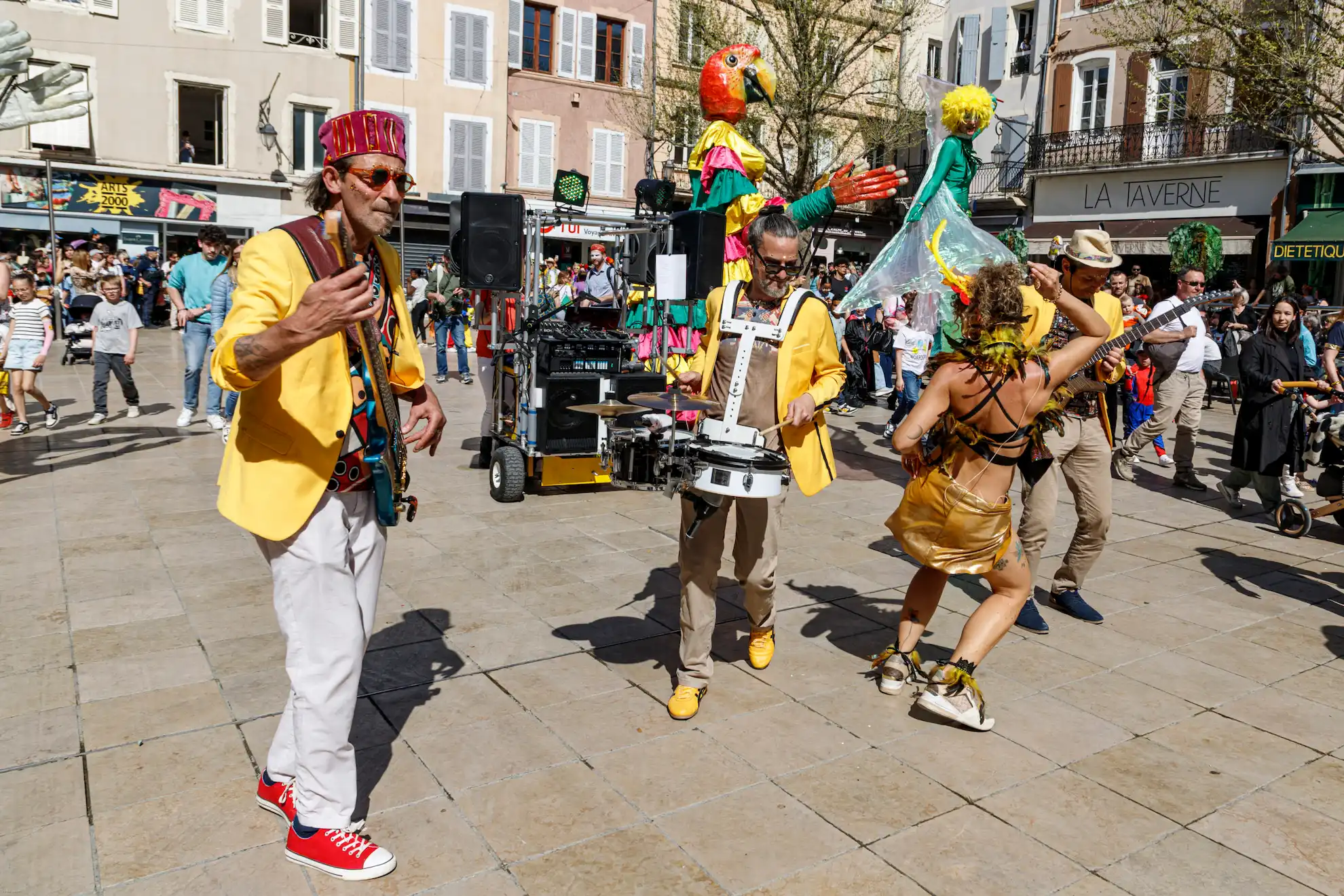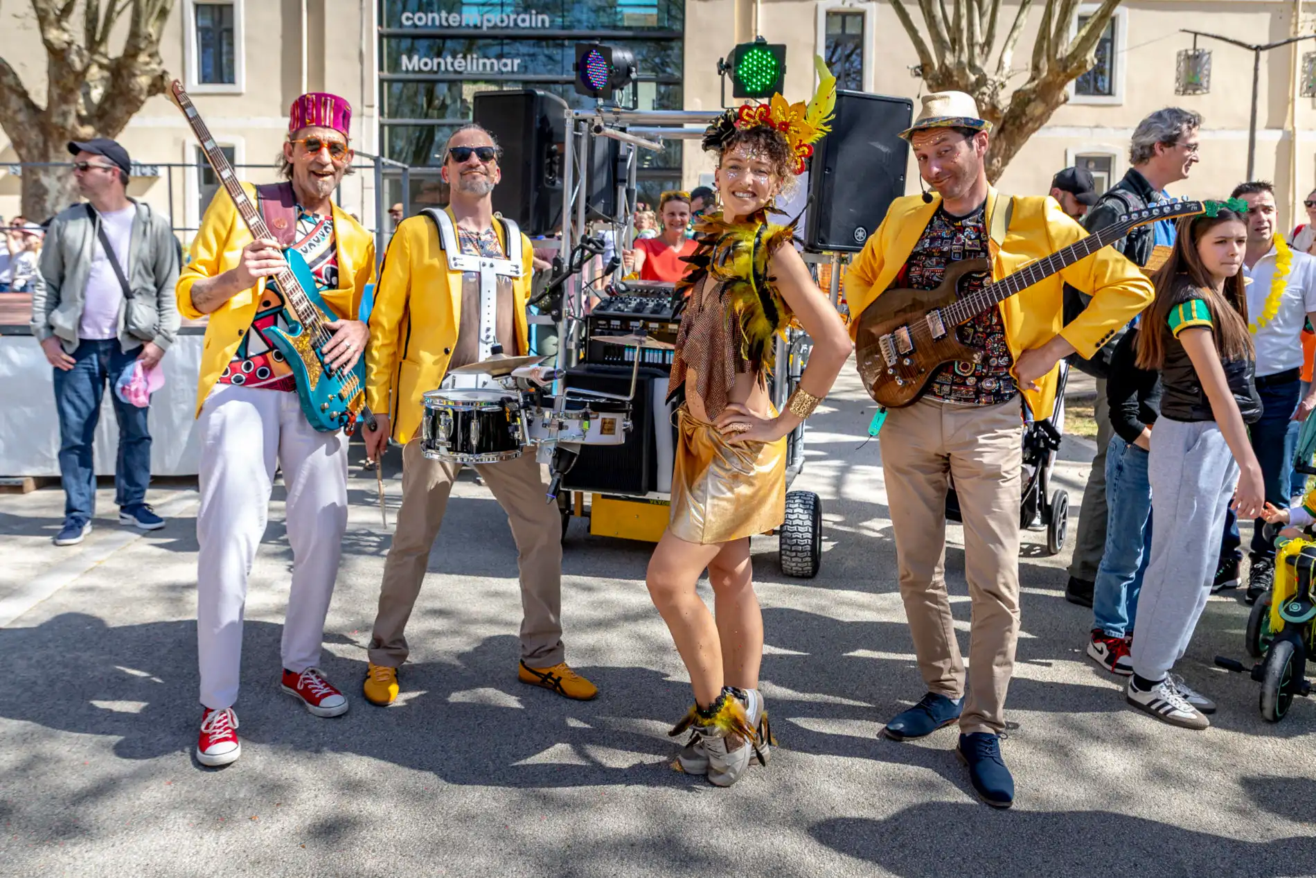 Pensée pour la déambulation en rue, la formation est totalement autonome grâce à un chariot électrique qui transporte et diffuse le son. Résultat : une scène mobile qui transforme chaque espace